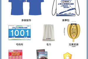 所有参赛个人将获得组委会提供的赛事装备,含赛事包、赛事T恤、赛事号码布、赛事手册、完赛奖牌、赛事毛巾、价值5元的即开型体育彩票一张(最高奖金10万元人民币)、《上海企业》或《上海企业家》杂志一本、“易美齿科赞助的豪华洁牙套餐卡价值人民币1288元”。